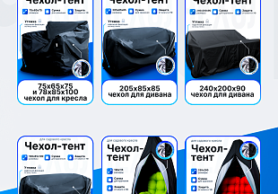 Чехол 200х308 для 2х местного кресла-кокон 230х200 с молнией черный + серебристый
